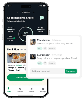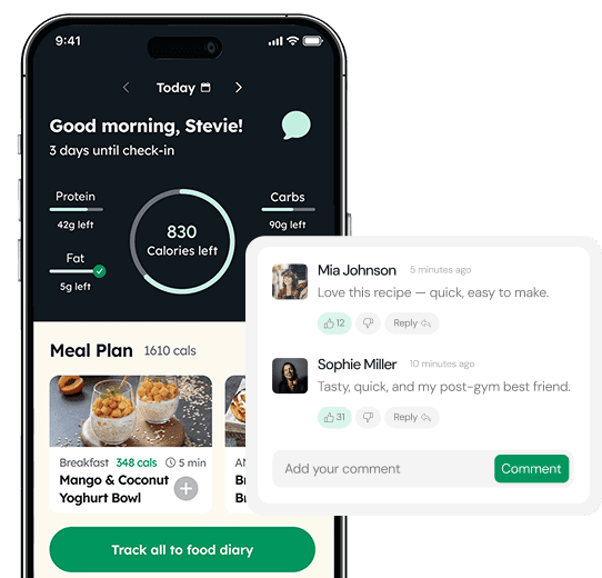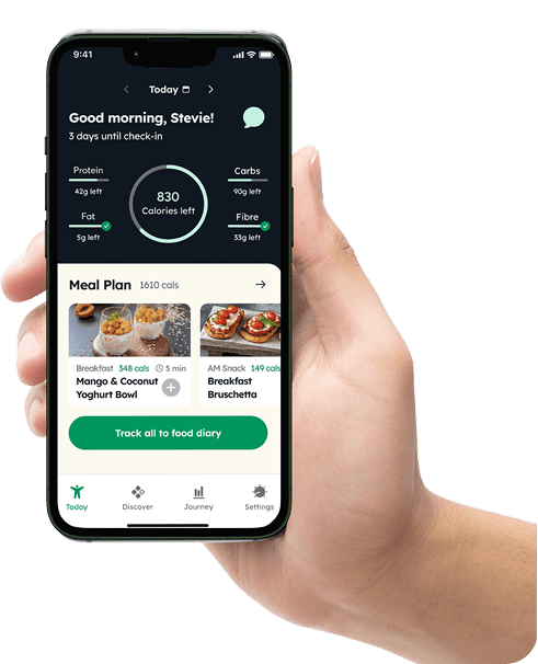 We’ve removed the overwhelm. You’ll get a clear plan, daily support and flexible meals you’ll actually look forward to. Plus, our app takes the guesswork out of tracking and portioning - so you can stop overthinking it and focus on consistency.